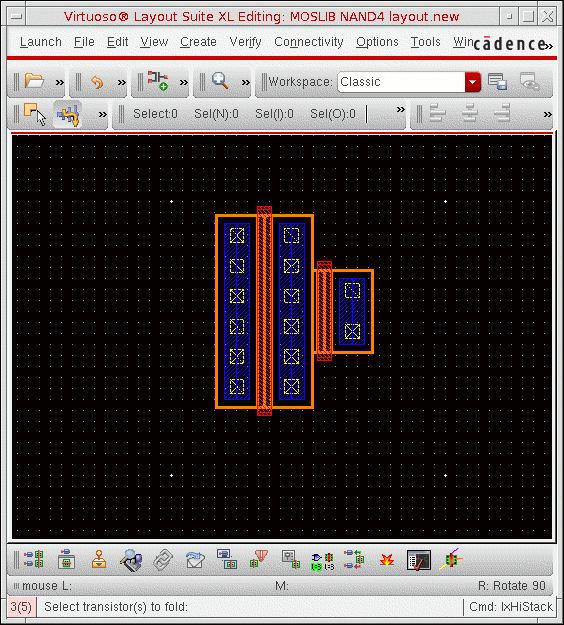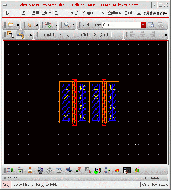 The device is unfolded and reduced to a single fold of the same width as the schematic instance or to the total layout width if the unfoldUseLayoutWidths environment variable is set to t.