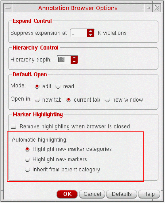 To give a newly-created marker the same visibility as its parent category, set automatic highlighting to Inherit from parent category.