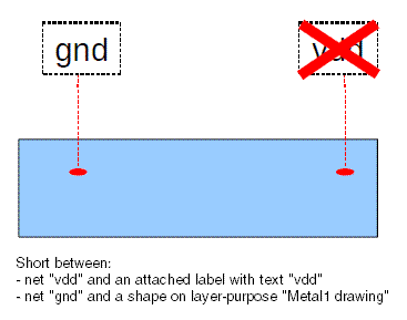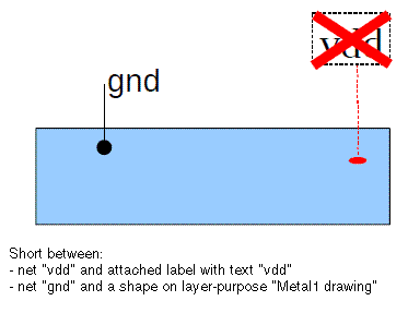 Scenario 1: If a label is attached to a shape that has sticky connectivity to another net, a short marker is created overlapping the label.