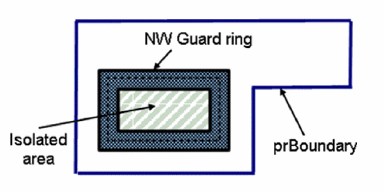 The figure below represents a p-substrate divided into two areas by a nwell guard ring.
