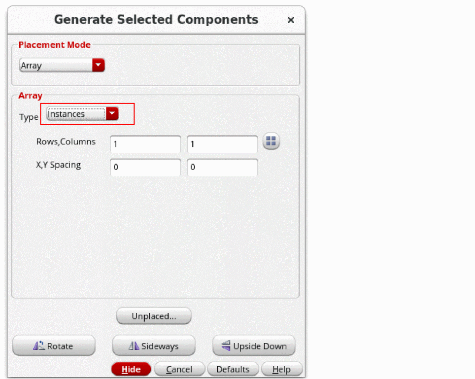Instance arrays are XL-compliant and enable simple array generation for a group of selected components. However, the selected schematic instances must not be members of any top-level modgen constraint.