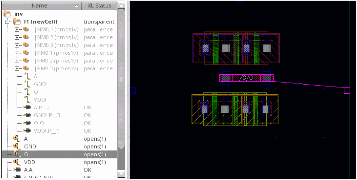 - If the nets are external to the new made cell and they do not already have pins created, Layout XL creates new pins for the nets.