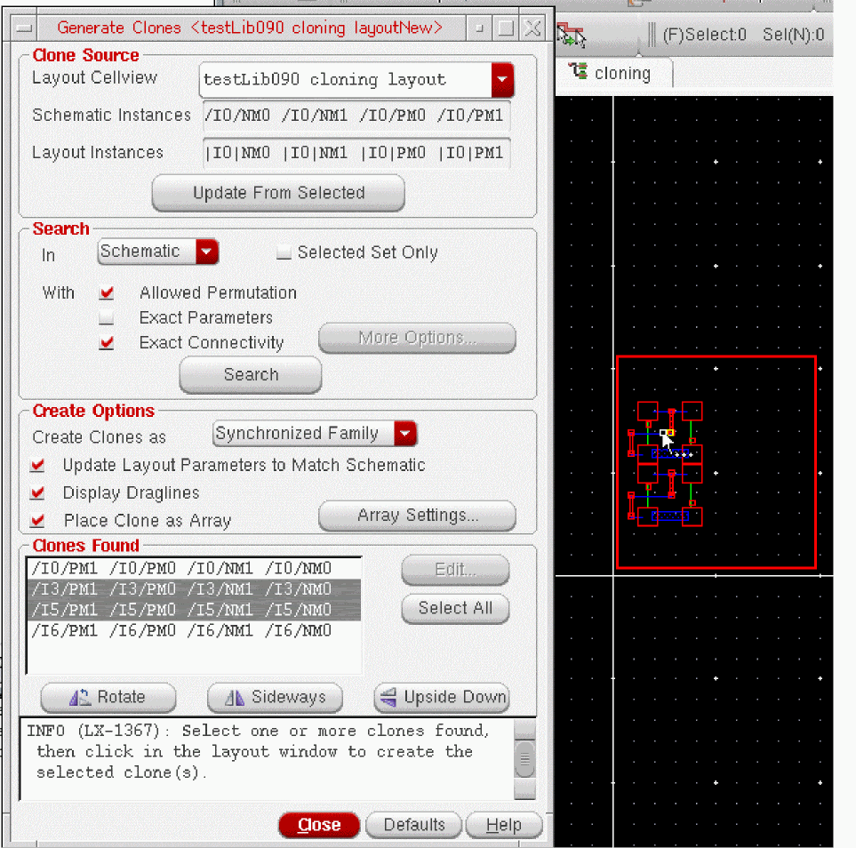 - If the search is run in the schematic and Selected Set Only is selected, the clone search ignores any devices that are not selected in the schematic or that are already implemented in the layout.