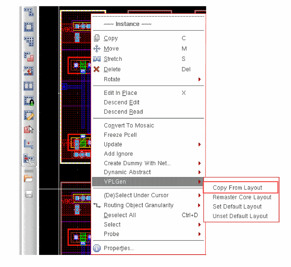 Right click the VPLGen Pcell instance and select VPLGen – Copy From Layout.