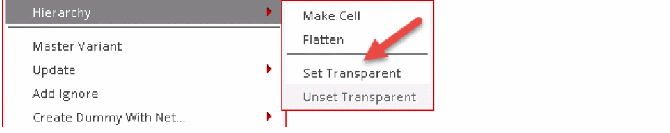 Contrary to the Set Transparent command, if an existing transparent instance needs to be marked as non transparent, use the Unset Transparent command.