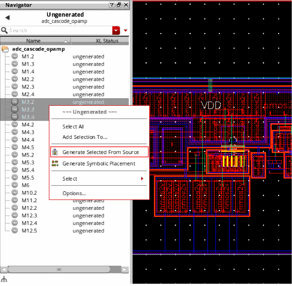 - Right-click the ungenerated instances in the layout Navigator assistant and choose Generate Selected From Source, as shown in the figure below.