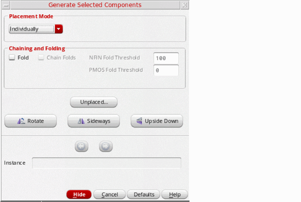 Shiftkey pressed during selection or area-select the components. To deselect a component, click the component while theCtrlkey is pressed. - Click Unplaced to view the Instance/Pin List Form. In the form, select the components to place and click Apply to select them in the schematic window. See Listing Unplaced Components after Layout Generation.