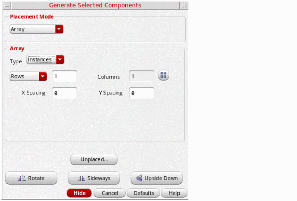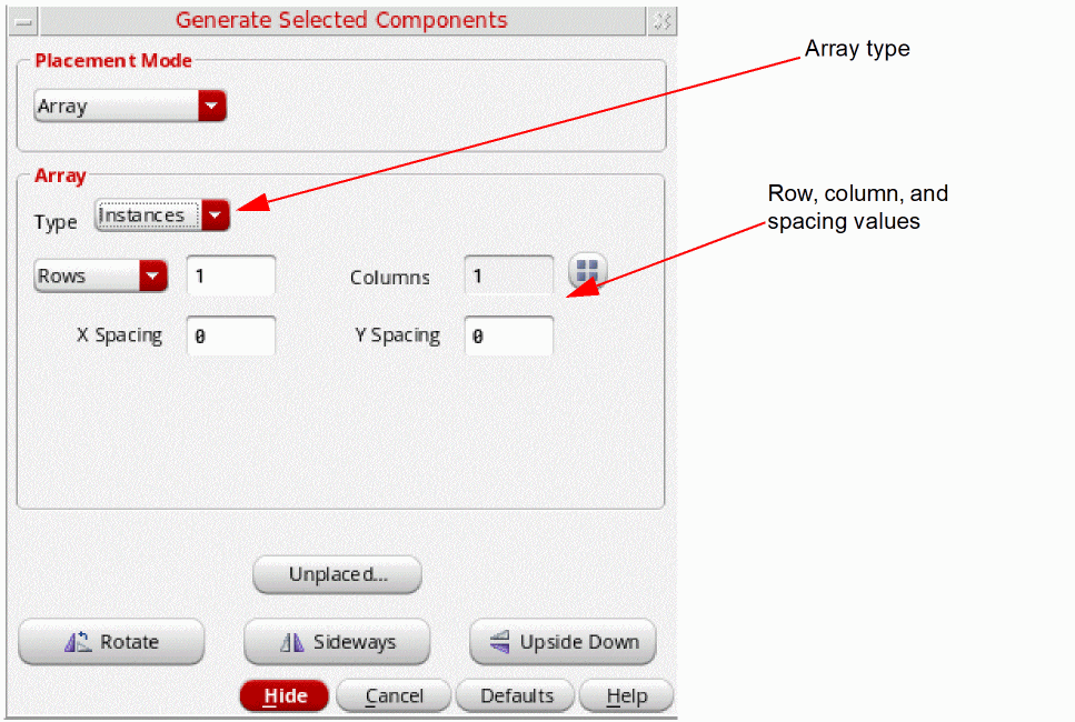 - In the Placement Mode group box, choose Array.