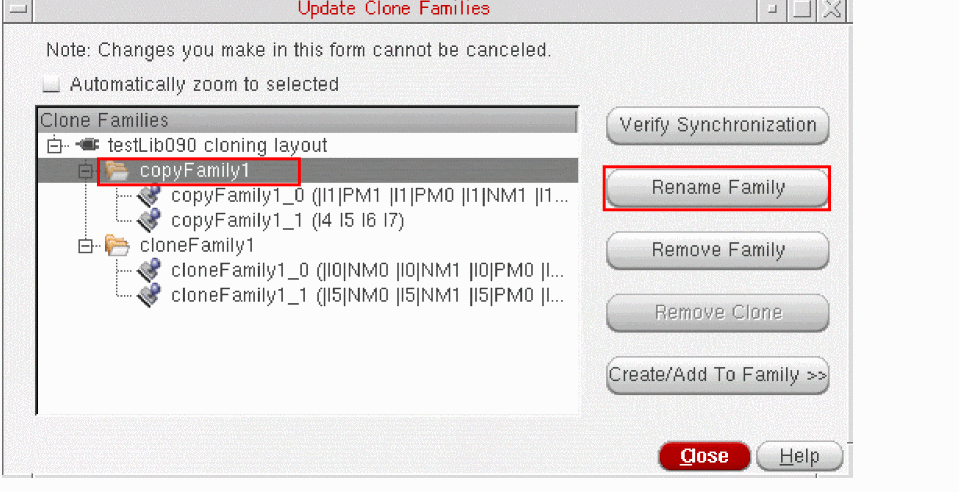 Select the Rename Clones check box if you also want to rename all the clone members using the new family name,