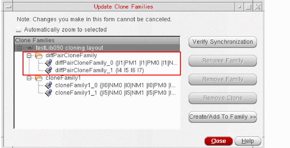From the layout window menu bar, choose Connectivity – Update – Clone Families.