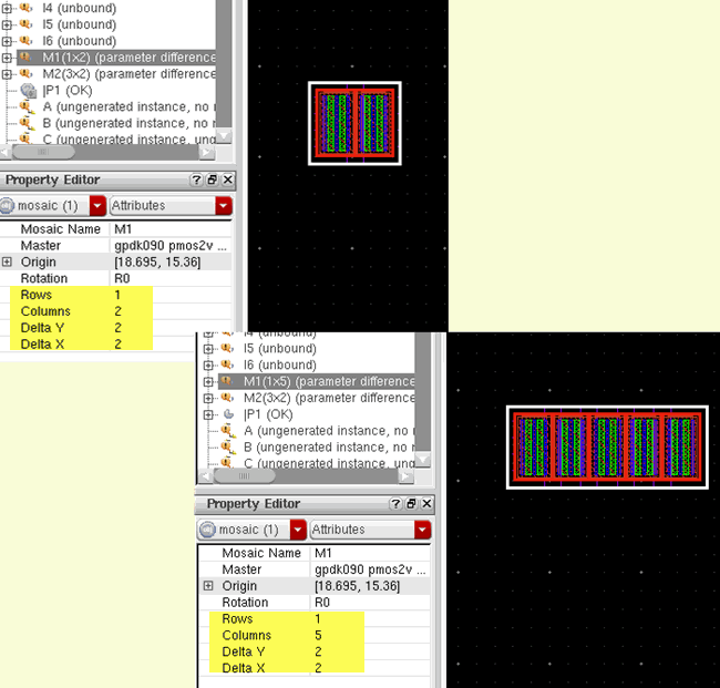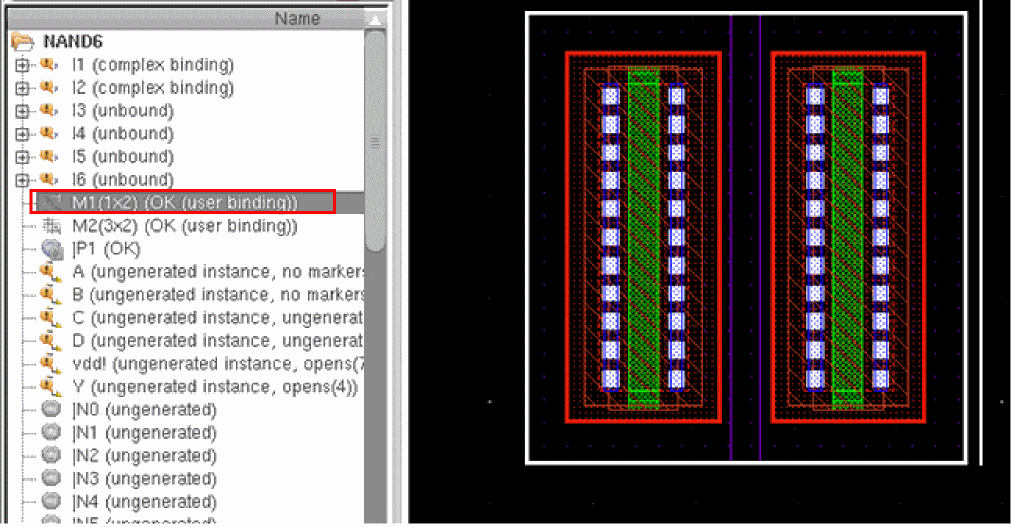 The binding of a mosaic to a schematic instance is reported as OK if the size of the mosaic is equal to the mfactor of the schematic instance. Else, the binding is reported as complex binding.