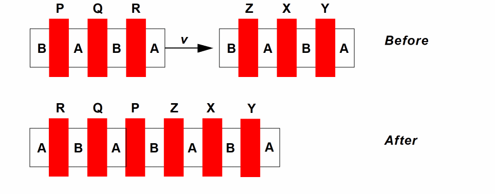The following transformations are possible. Which of the three is employed is controlled internally by the abutment code. You are not required to choose a particular transformation. No transformation is performed which would break the chain.