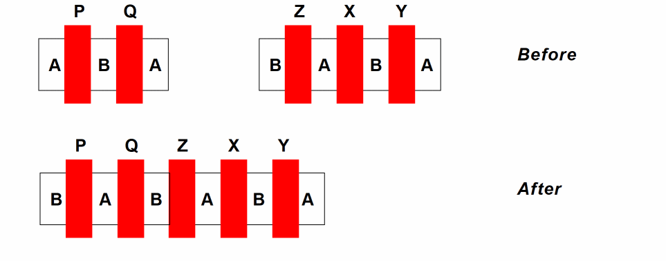 Neither Chain Mirror nor Cascade Mirror alone can deliver a transformation that allows abutment. Instead, a mixture of Cascade Mirror and Permute is employed in order to achieve the desired result.