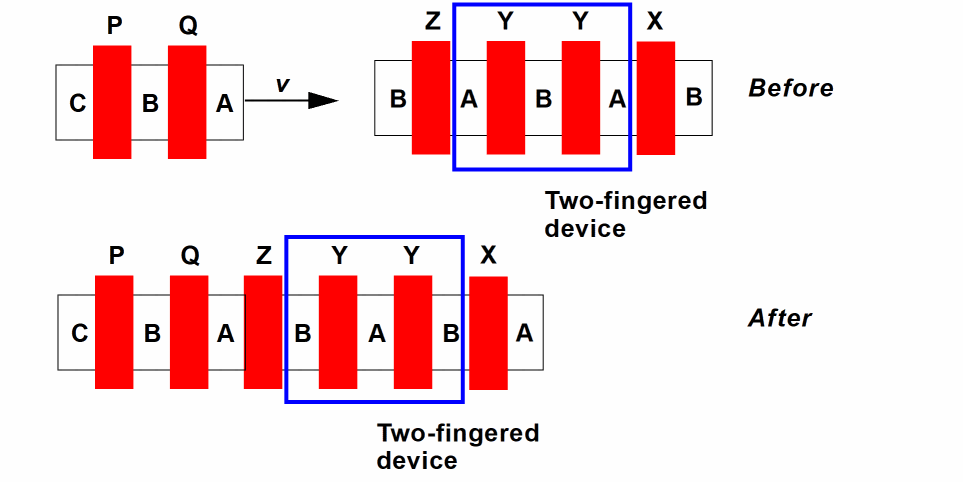 Mirrors the complete moving chain about its central Y axis to allow abutment.