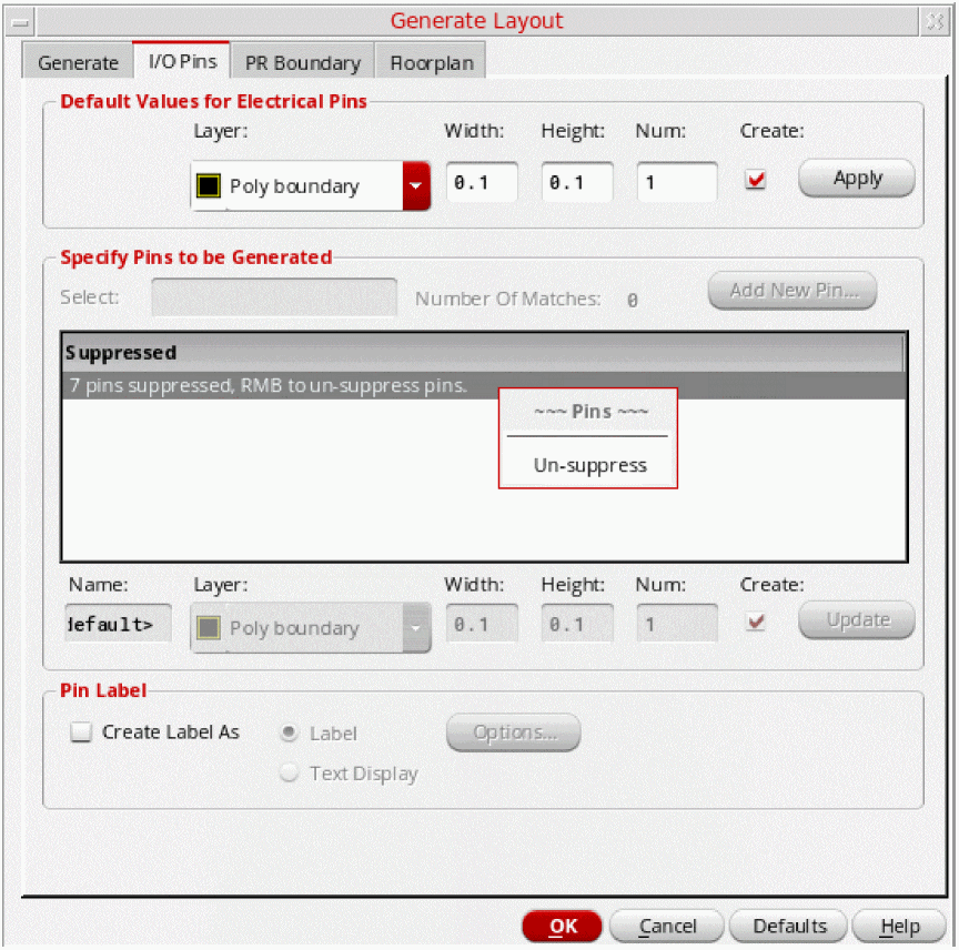 Connectivity – Generate – All From Source – I/O Pins tab (Generate Layout Form) Connectivity – Update – Components And Nets – I/O Pins tab (Update Components and Nets Form) |