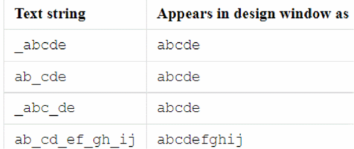 The default is off, which means that the software displays underscore characters ( ![]() |