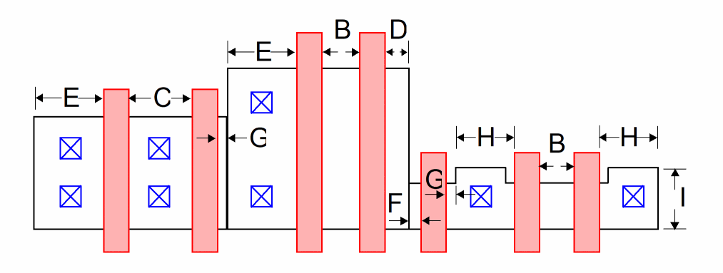 I = abutMinContactWidth. Determines whether to use the abutEncloseContact rule or the abutEncloseDogBoneContact rule when a contact is required between gates.