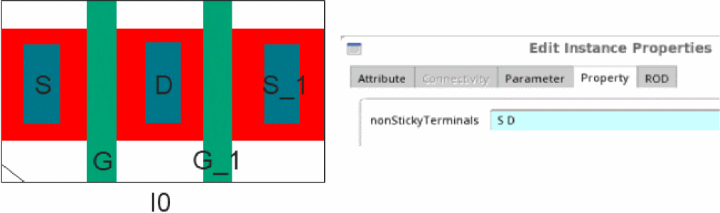 The nonStickyTerminals property is used for an individual instance or instance master. When the connectivity is removed from the instance terminals, the connectivity extractor does not report any open or short markers.