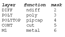 A Poly-Insulator-Poly Capacitor (PIPCAP) stack uses a cut layer that connects a metal layer to two poly layers. The poly layer at the bottom is routable, whereas the poly at the top is nonroutable and is used to define capacitors. The technology file defines the top poly layer by using the function, pipcap.