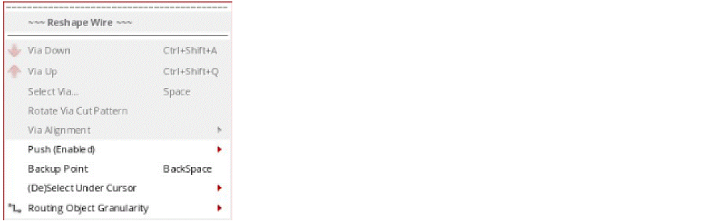 Selecting and right-clicking the wire in the design canvas when the Reshape command is active displays the Reshape Wire shortcut menu commands.