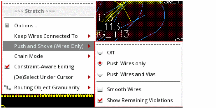 Show Remaining Violations: The violations that exist on a wire as a result of push and shove are shown.