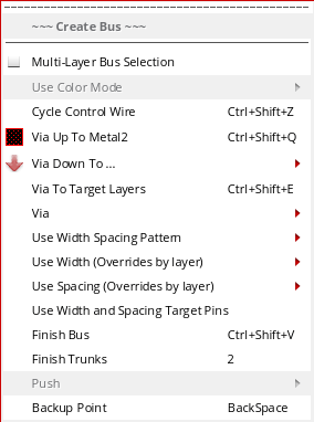 When current layer is unable to connect to any upper layer in the layers stack, the Via Up field appears disabled in the Create Bus Context Sensitive menu.
