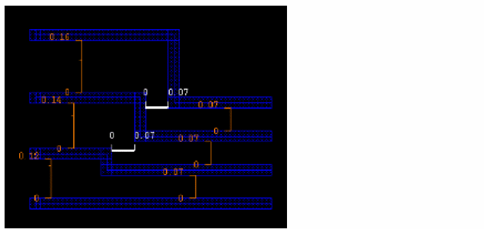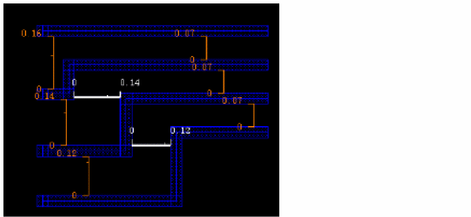 The following figure displays the spacing on the middle segment when the gatherAndSpreadSpacing environment variable is set to smallest.