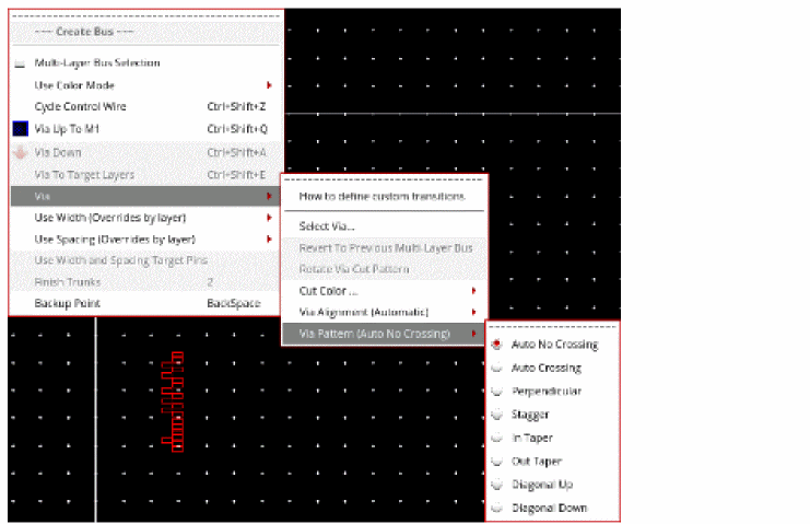 Lets you define customized SKILL procedures to create complex multi-layer bus transition patterns.