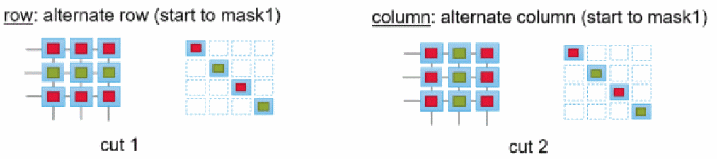 The pattern defined in the above example specifies that for cut1 layer apply alternate row and for cut2 layer apply alternate column.