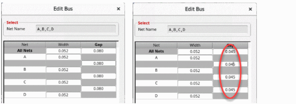 In the Create Bus form, in the Net Name field, specify the list of net names separated by commas or spaces.