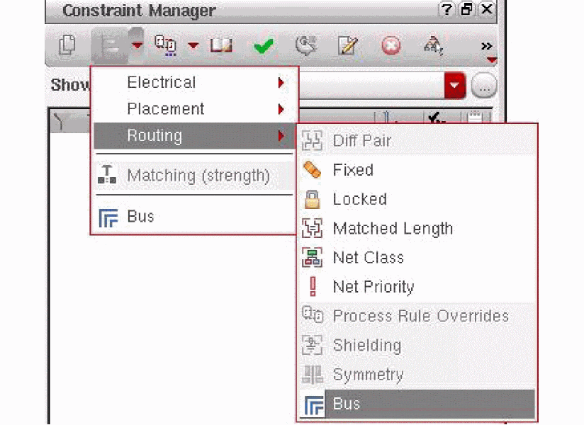To create a bus constraint in In Layout XL and higher tiers by using the Constraint Manager:
