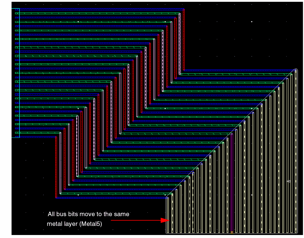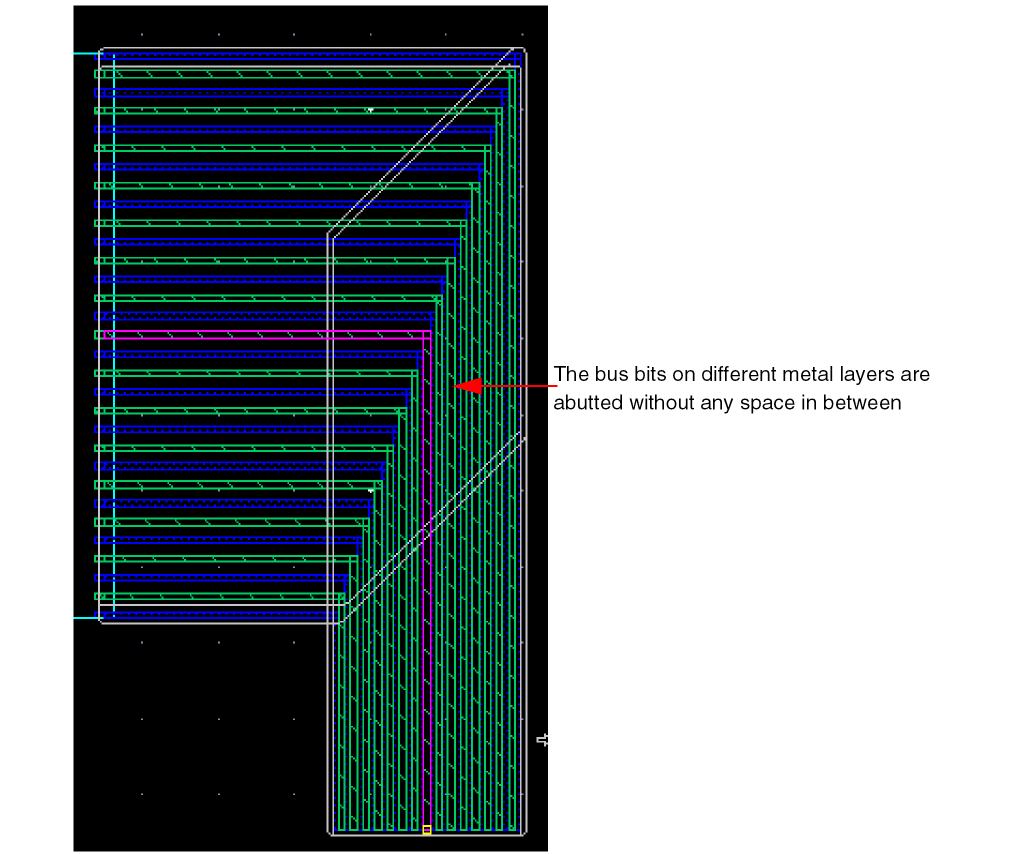 Metal5and the spacing between the bus bits is adjusted to avoid the spacing violations.