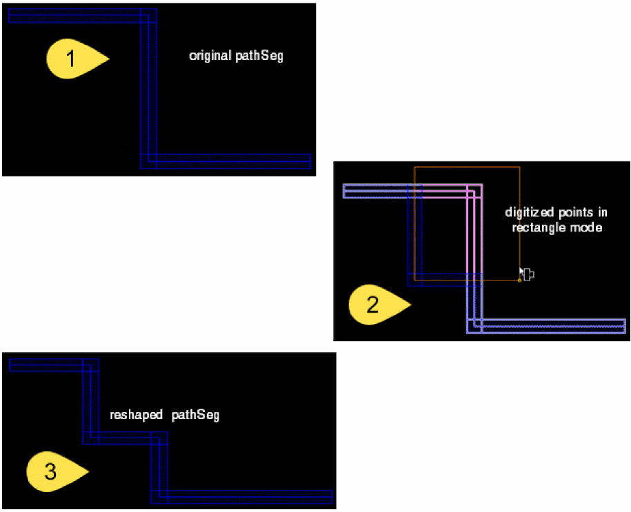 - When you select the Reshape command, all the other pathSegs or wires in the same route as the selected pathSegs or wire are also selected.