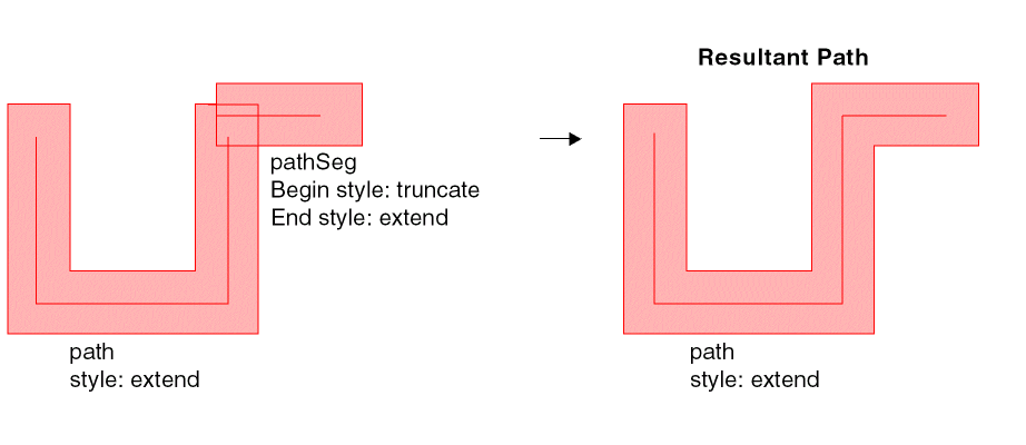 When creating or editing wires using paths, the edges of a path can be coincident, but not overlap. When creating or editing wires using pathSegs, a series of pathSegs can be stretched to cross over other pathSegs or overlap.