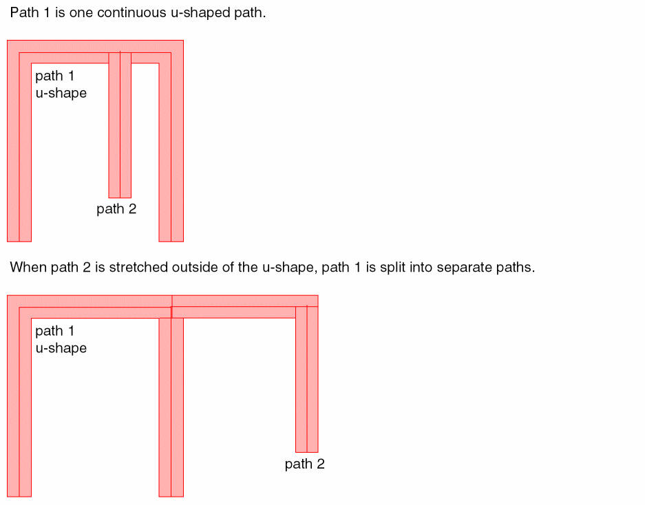 The following image shows how a u-shaped path is not allowed to be stretched over itself and self-intersect.