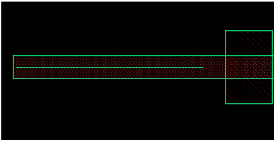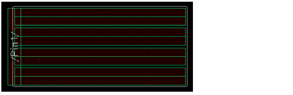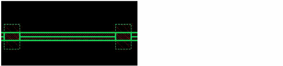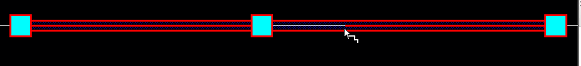 Similarly, the following figure shows an example where a wire with inserted vias already exists and a new wire with inserted vias is being created.The trim, bridge, and patch shapes get inserted after the new wire along with the inserted vias is placed, as shown in the following figure.
