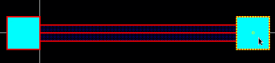 However, when you create a wire from a pin with color set to gray, it is created with the color that is currently set as active in the Palette, but on the same layer as the pin, that is, the wire inherits only the layer information from the pin. The following figure shows wires created from the two pins that are on different metal layers when the pin color is set to gray.
