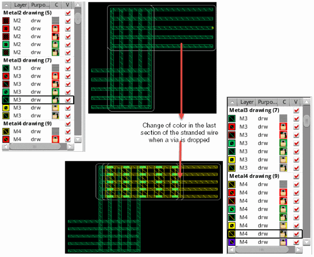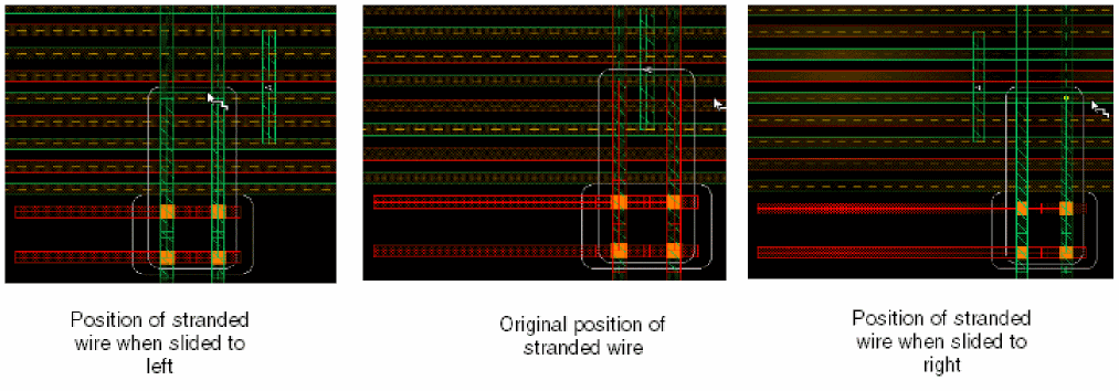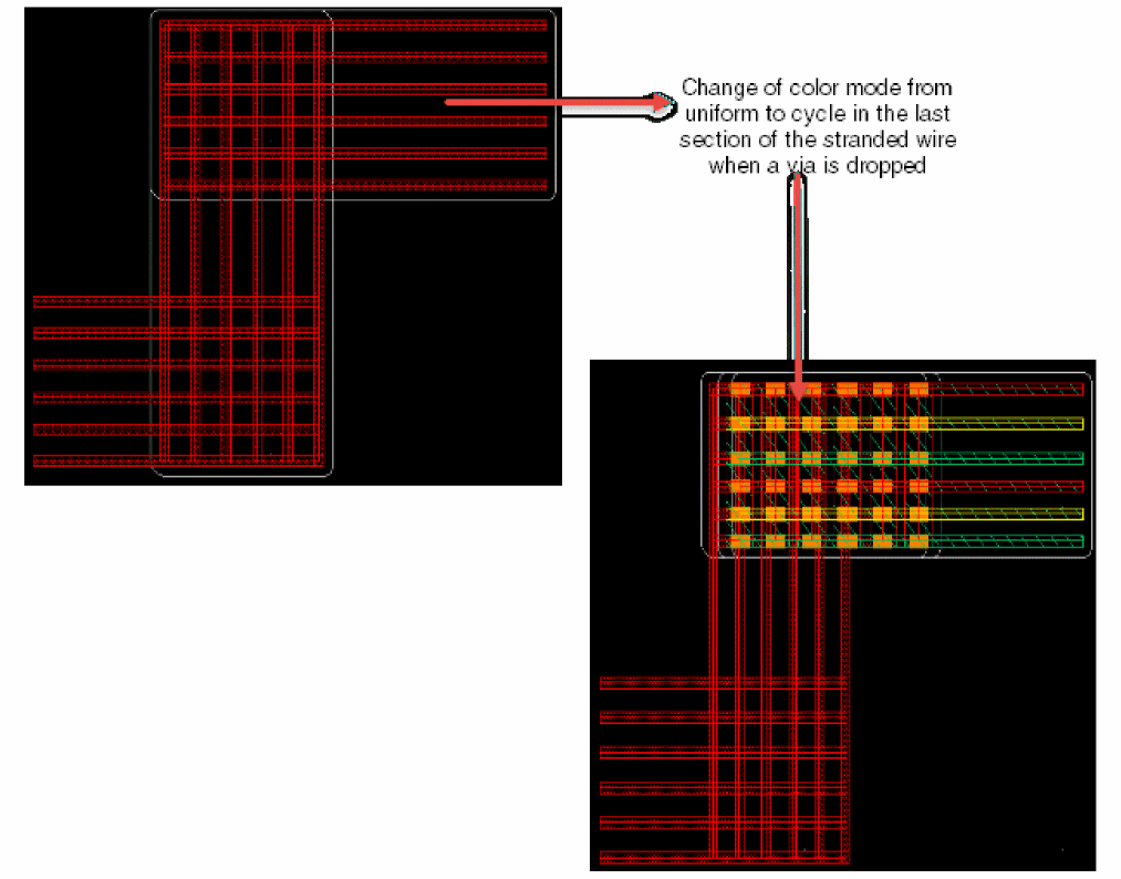Let us now see some scenarios when the colored stranded wires along with the vias are slided. The behavior of the stranded wire depends on the color mode that is selected.