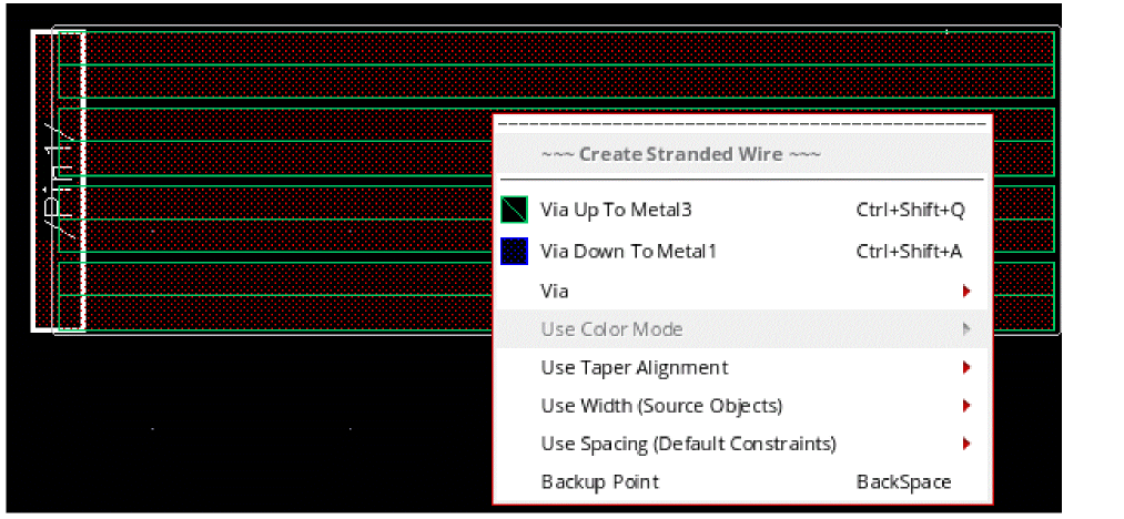 Choose the Via Up or Via Down option from the Create Stranded Wire context-sensitive menu to insert a via on the stranded wire.
