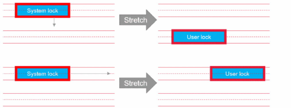 Similarly, editing an existing wire by create wire or stretch, which has system lock, results in a wire having user lock.