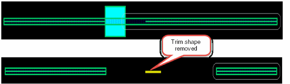 Another example, which is a special case, is when the exceptSpacing value is set to 0, then trim and bridge shapes are inserted at all wire ends, as shown in the following figure.