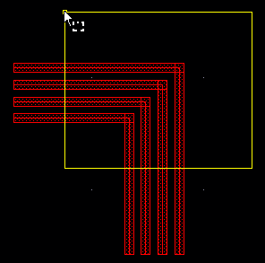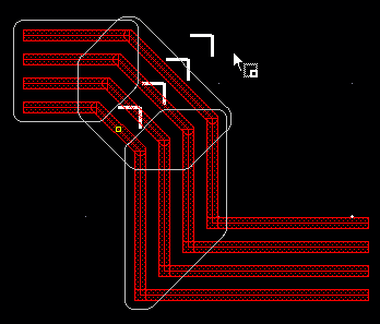 When the cursor crosses an adjacent Metal1 layer on the same net, the via is automatically generated and displayed on the end of the cursor, as shown in the following figure.