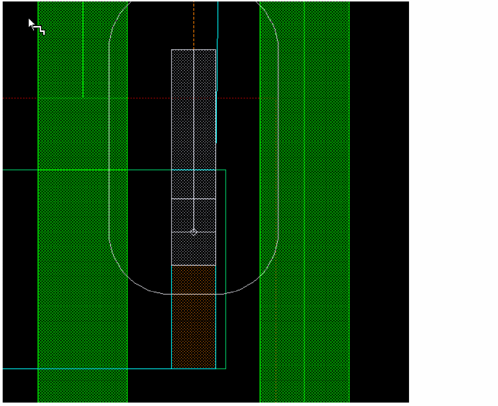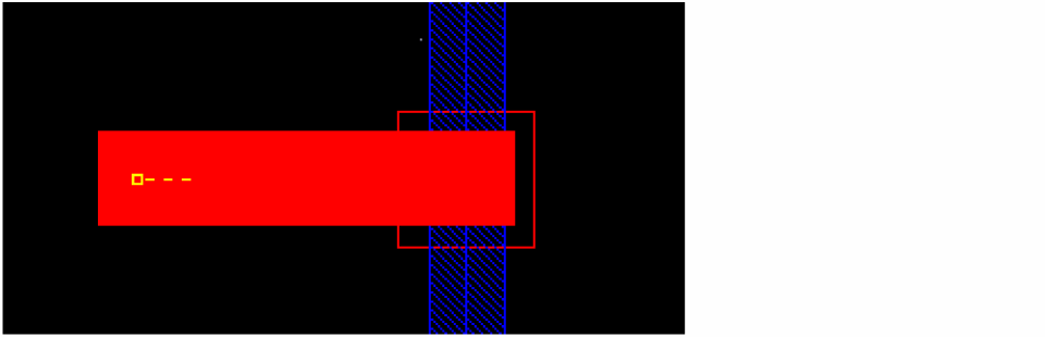 The via origin is snapped to the center of the Poly wire. The centerlines of LiPO and Metal1 are aligned while the PO_LiPO via is created and the alignment marker is created to show that the centerlines are coincident. The via is created on LiPO as shown in the following figure.