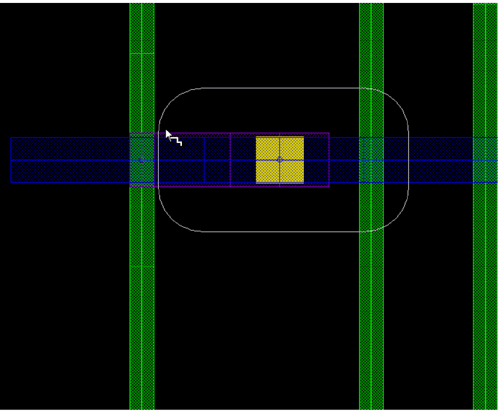 Start creating a wire with the current layer as LiPO. The cursor is automatically snapped to the intersection between the Poly wire and the crossing Metal1 wires.