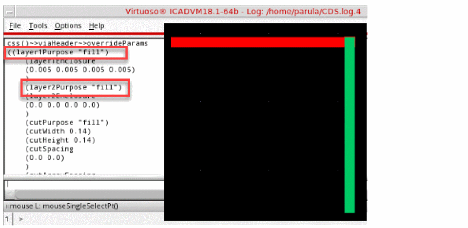 Interactive routing commands support cdsGenVia for different purposes other than drawing, for top or bottom layers. This means that the via is created according to the purpose of the input and output pathSeg.