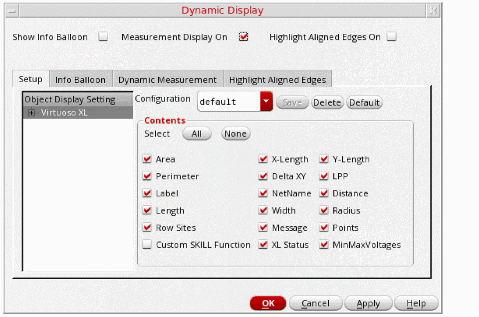 For selecting routing objects, you can specify Routing Object Granularity in the Selection Options (Options – Selection) form. The granularity options are supported only in the current hierarchy and in the Layout XL and higher tiers. The granularity options include: