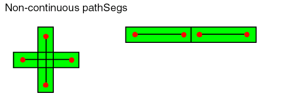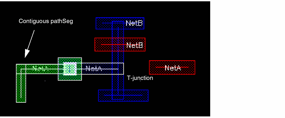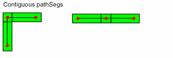 When pathSegs are created in routes, the data is symbolic. When pathSegs are not created in routes, the data is geometric. PathSegs can be used to create on-grid 45 degree wires. The width of a diagonal pathSeg is manipulated to force vertices of the perimeter on the manufacturing grid. PathSegs cannot be used for any-angle routing and are limited to orthogonal and diagonal routing. A pathSeg has a start point and an end point.