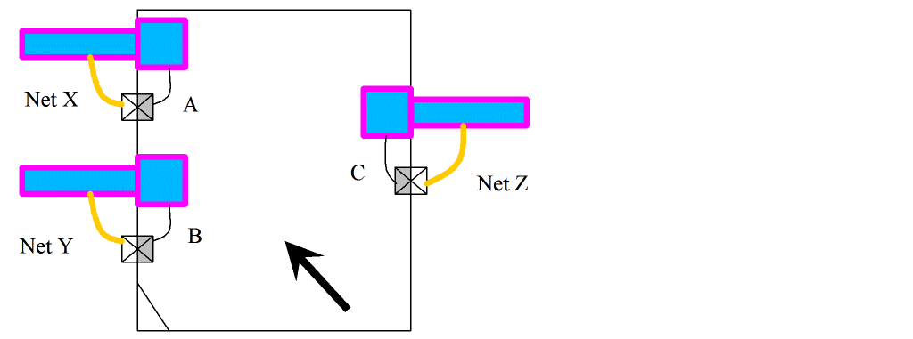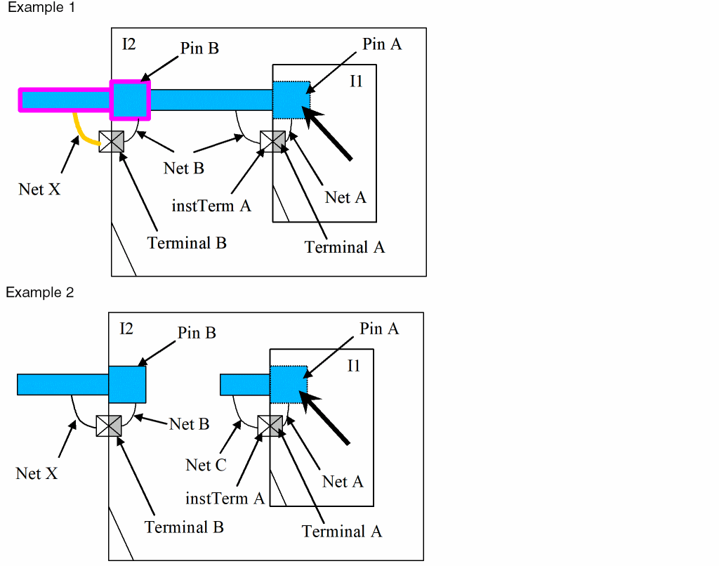 In Example 1: clicking on Pin A or Pin B selects the net X. Observe that when net X is selected, only the pins on level-1 are highlighted