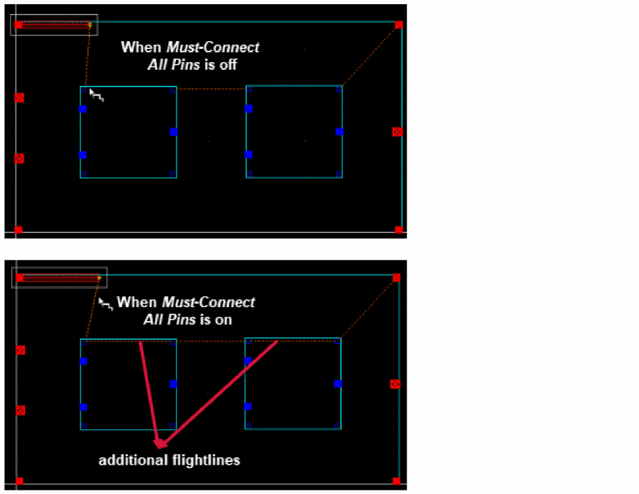 In Example 2: clicking on Pin A selects nothing because the pin does not have a direct connection to a top level net.