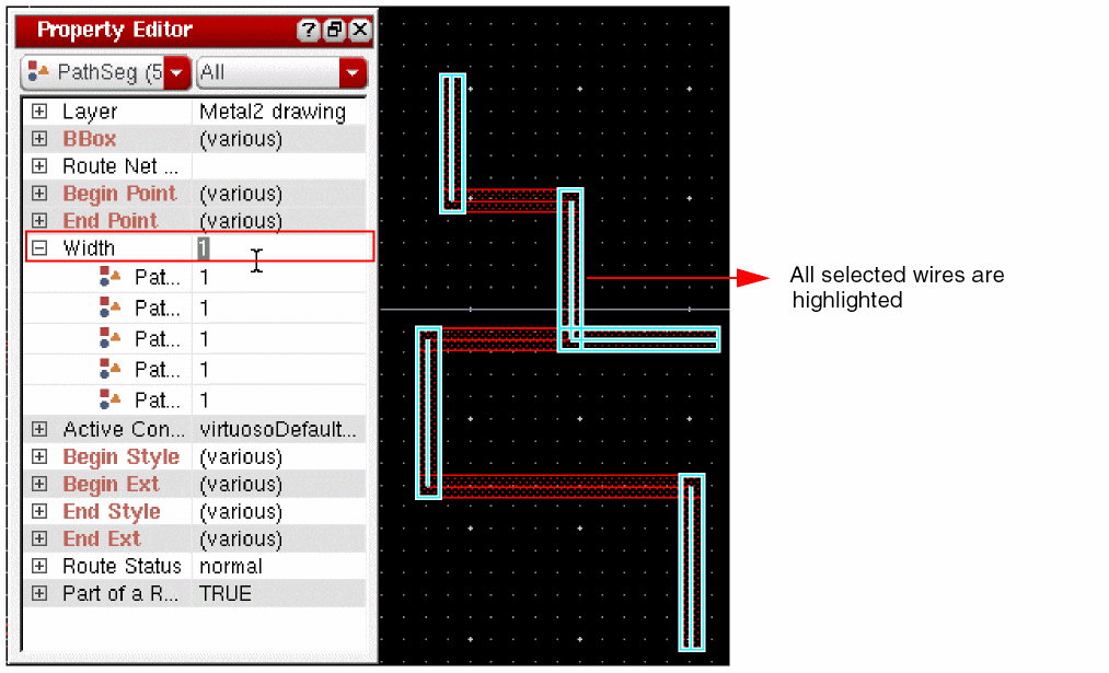 Width is one of the important parameters of a wire. The default wire width is determined from the minWidth constraint that can be set in different types of constraint groups. For information on constraint group precedence, see